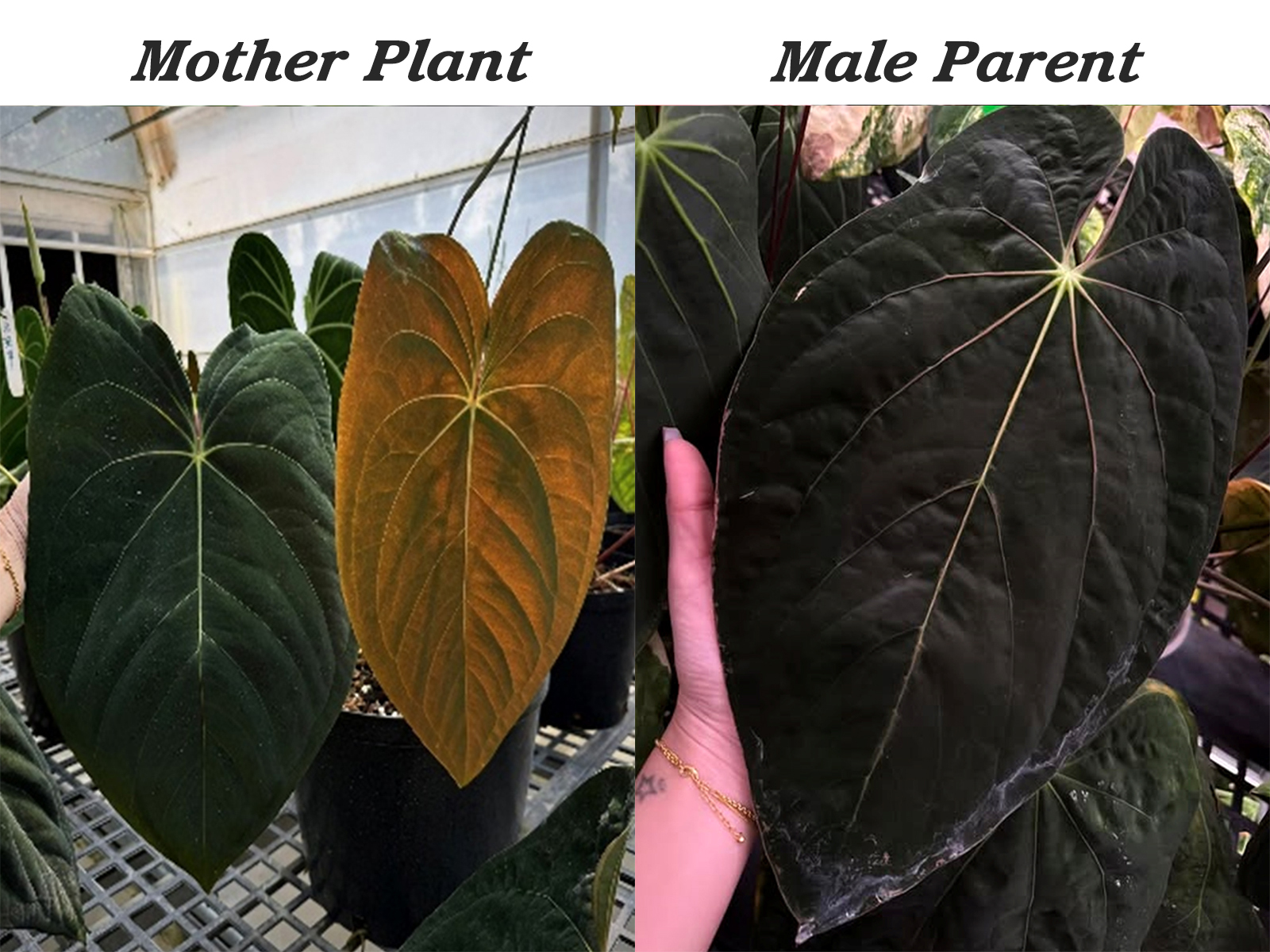 Anthurium luxurians x Anthurium nigrolaminum 'Ecuagenera'